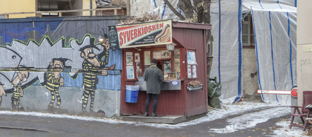 I Oslo finnes det fortsatt noen klassiske kiosker. En av de mest særpregede er Syverkiosken i Maridalsveien 45, noen titalls skritt øst for Aleksander Kiellands plass. En rød, knøttliten trebygning, trolig oppført en gang i perioden 1930 til 1950. Den opptar kun noen kvadratmeter der den ligger mellom to bygårder og et plankegjerde. Her får fortsatt kundene servert sin pølse fra en liten luke i veggen. Det flate taket, de vertikale trebordene og de avlange kiosklemmen har heller ikke gjennomgått noen større forandringer siden bygningen var ny. En blomsterkasse fylt opp med lyng er montert opp på den ene veggen. Dette må være en etterlevning fra etterkrigstidens Norge, den gangen da selvplukket lyng i hvit plastkasse var synonymt med pynt.