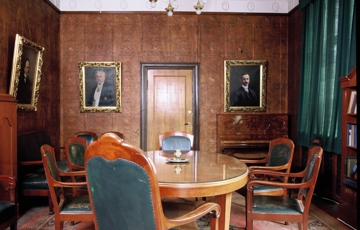 Det er i dette lyset vi må se moderniseringen, som ellers kan synes både hjelpeløs og ubetydelig. Den handlet strengt tatt bare om justeringer; døren inn til direktørens kontor ble finert med mahogni og påsatt enkelt listverk. Dernest påspandert en dørvrider i forniklet metall og bakelitt og det ble hengt opp nye, grønne gardiner i kunstsilke. Den andre døren ut til forgangen forble ådret (temmelig amatørmessig utført), men også den ble utstyrt med en ny dørvrider. Dørens forfatning kan tyde på at den var lite i bruk og at tilgangen til rommet hovedsakelig skjedde gjennom direktørens kontor.