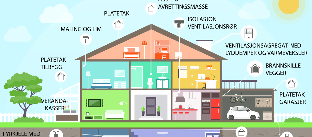 Eternittplater på tak er nesten alltid grå eller røde. Himlingsplater, ventilasjonssjakter og verandakasser kan være grå, lysegrønne eller lyse blå.