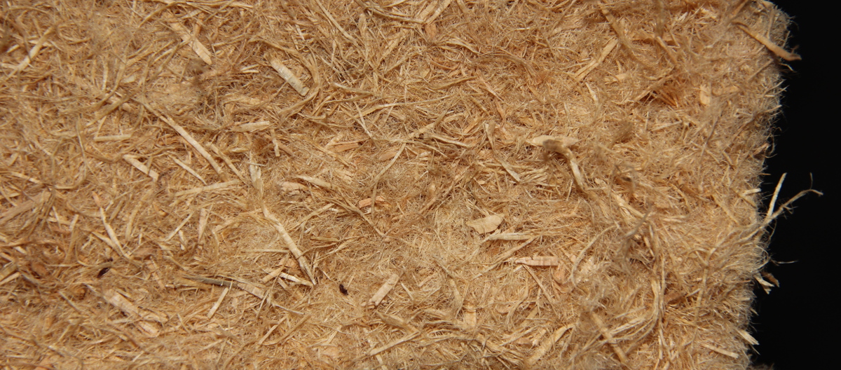 Etterisolering mellom bjelkelaget med trefiberplater.