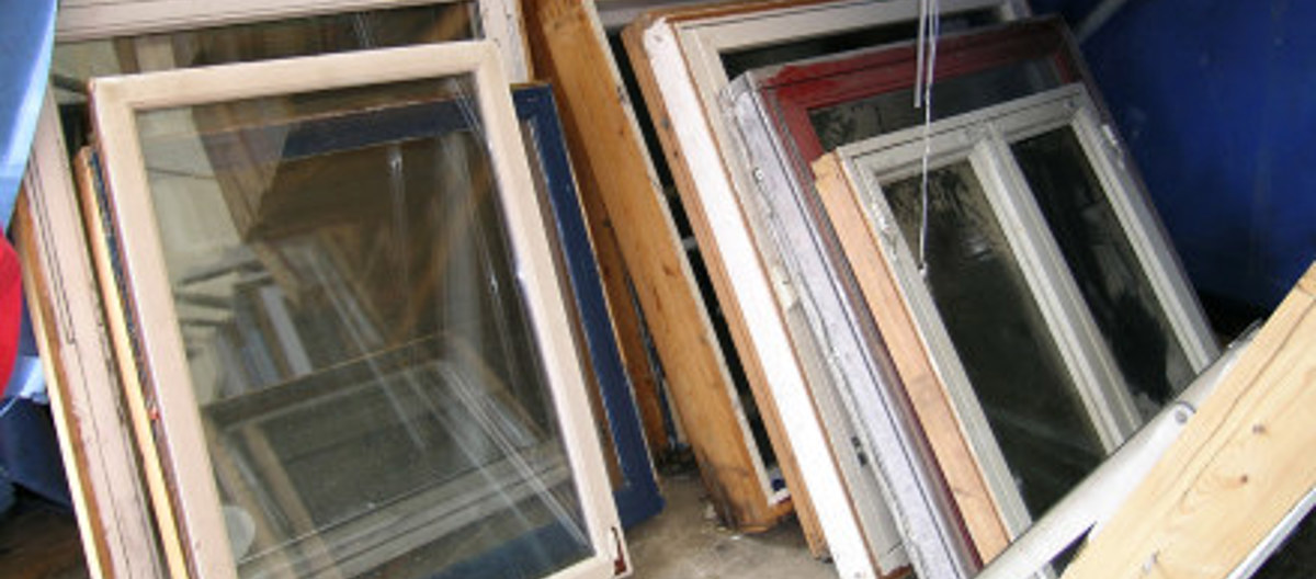 Eldre vinduer med isolerglass skal leveres på miljøstasjonen. Foto: Miljødirektoratet