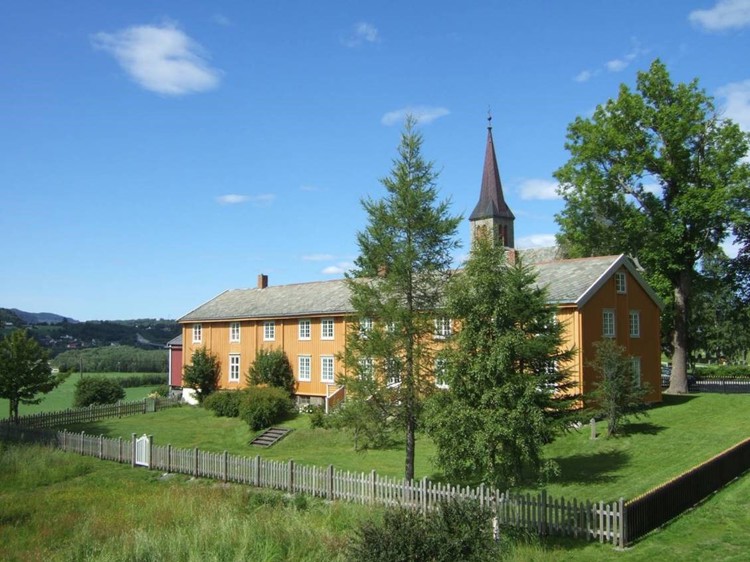 Det er offentlig toalett i kirkens gule servicebygg tvers over veien for låven, ved øvre kirkegård.