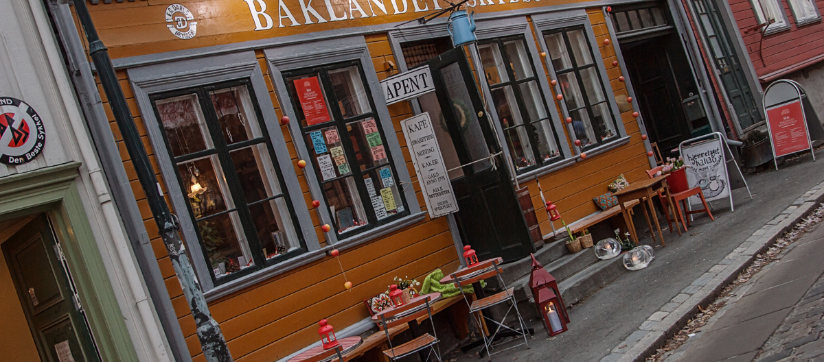 Minothi tar seg en rusletur i lokalene, innen vi lander ved et vindusbord. Det er lavt under taket, og han bøyer hodet på refleks. Hele stedet er ikke mer enn tre små rom med panelte vegger og skjeve gulv. Det innerste av dem er strengt tatt det tidligere portrommet, og der sitter du i helling ned mot gaten. Innerst i lokalet har du utsikt mot bakgården med snorer og klesvask. Fra vårt eget bord ser vi ut på Nidelva og bort til domkirken som reiser seg over løvfrie trekroner. – Det er noen stikkord her, mumler Minothi og refererer fra hjemmesidene. «Unike lokaler», «hjemmelaget mat», «idyllisk kafé». Men har vi allerede funnet nøkkelen til suksessen? Er det disse faktorene som fikk National Geographic til å kåre Baklandet Skydsstation til beste kafé nyttårsaften 2012? Eller Lonely Planet som hevdet at den beste fiskesuppen i Norge får du her? – Vi har fått mye omtale, nikker Gurli. – Vi har vært heldige med noen småting.