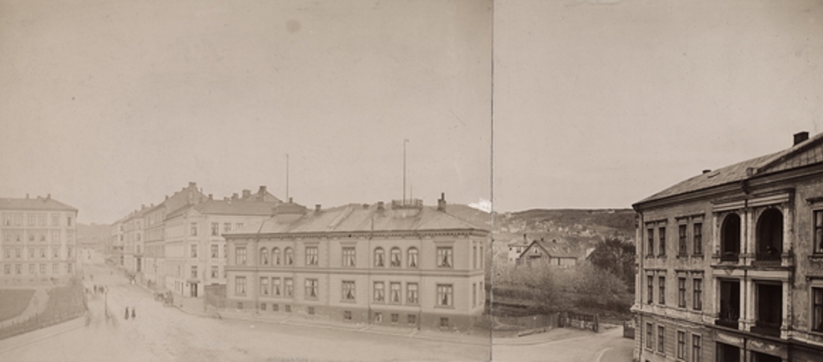 St. Olavs plass i 1903. Dette var en av de få utpregede plassdannelser i murbyen Kristiania. Bygningene er fra 1860-årene og representerer en tidlig fase i murbyens historie. (Wilse. Oslo Bymuseum).