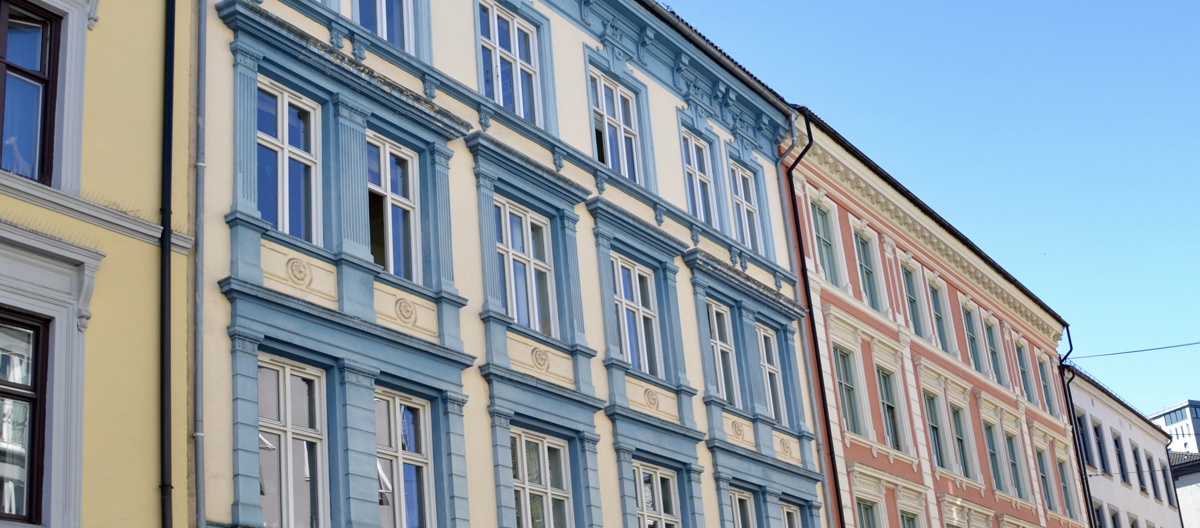 Tilsvarende var det tre plasseringer for inngangsdørene; mot gaten, i gjennomkjøringsporten eller mot gårdsplassen. Alle gatefasadene hadde noe dekor, oftest heldekkende puss eller kombinasjonen blankmur og pussdekor, og i regelen to vindusstørrelser og rammeløsninger.