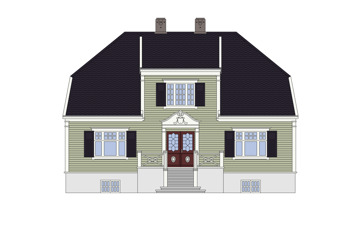 Da huset ble kjøpt var alt malt hvitt, både vinduer, dører og murrelieff. Det store panoramavinduet i front var erstattet av et tre-fagsvindu.