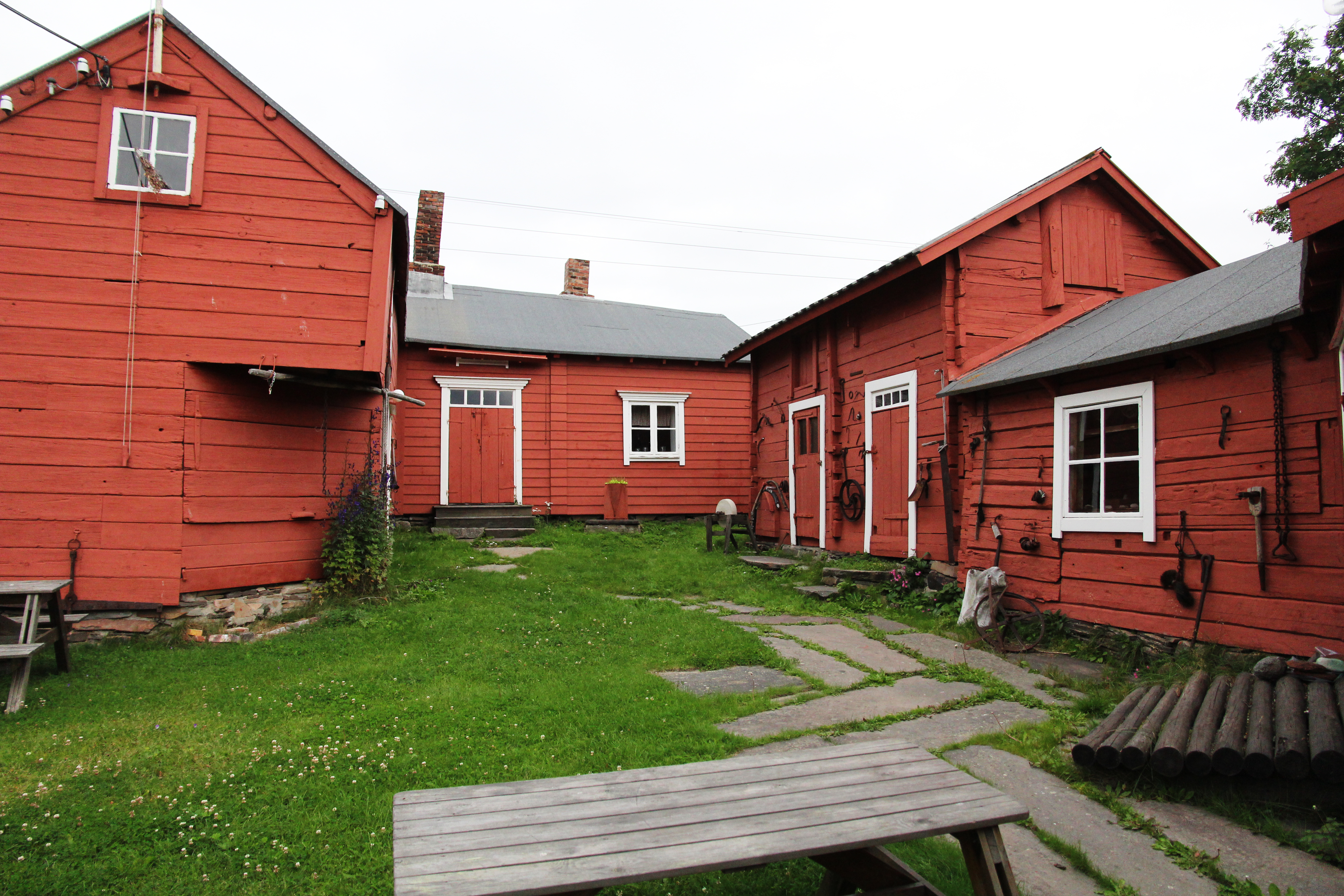 Vi har kommet til Toumainengården i Vadsø. Her møter vi Sigrid og Randi som forteller om kvensk byggeskikk, Varangerhus og gården vi sitter i.