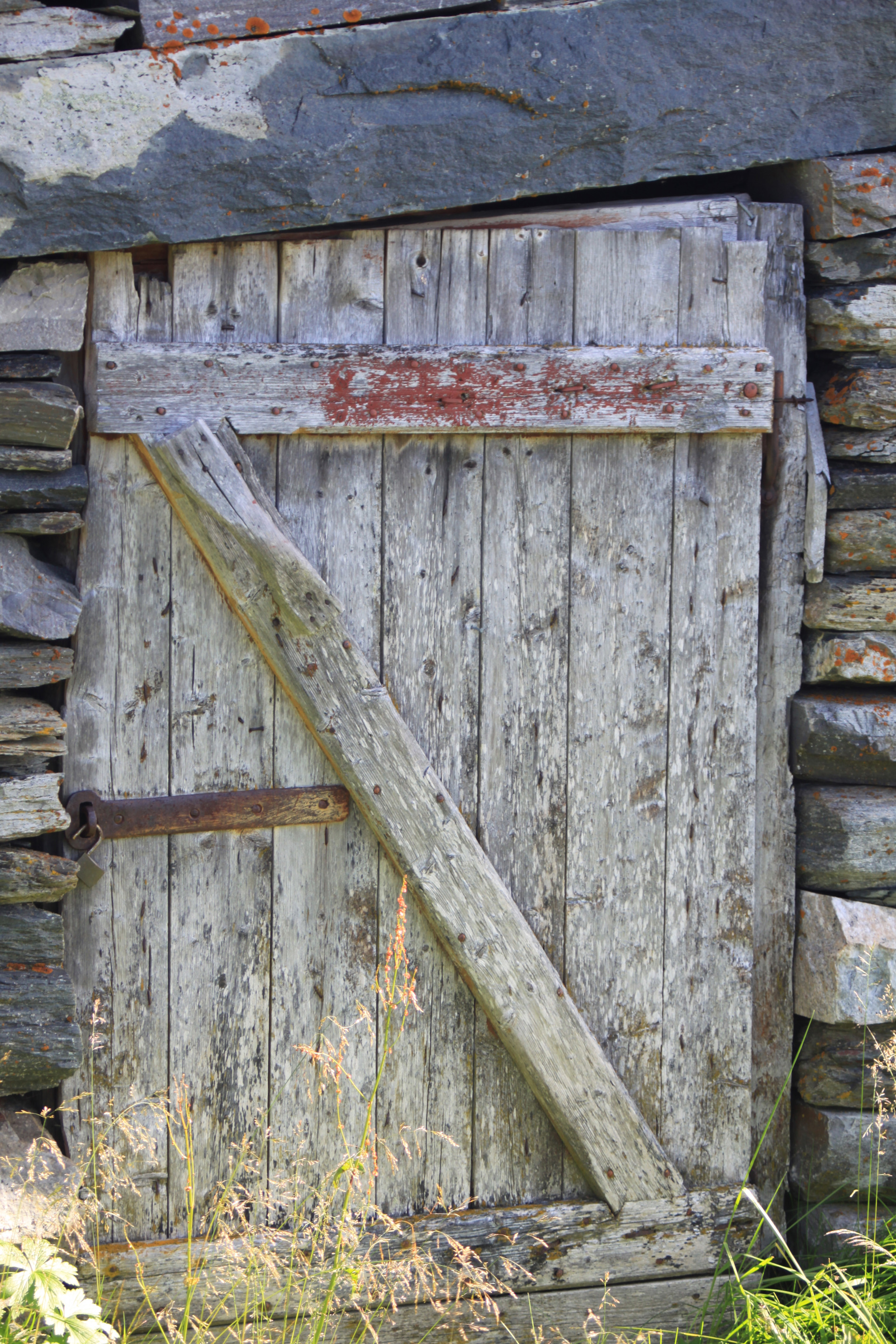 Dørblad av labanker og skråband, panelt med stående panel på en side.
