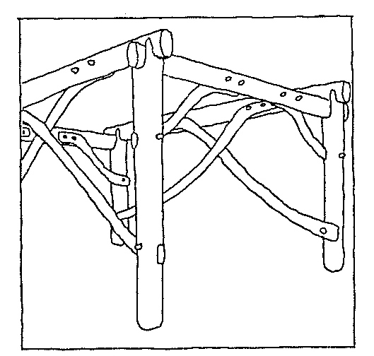 (A) Forskjellige verktøy med v-formet egg, beynttes til å skjære, høvle eller profilere i tre med. (B) Innhakk i nederste enden på skiftesperrer der denne griper om rennesperren. (C.) Kloforbindelser.