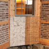 Mur- og pussarbeidene har vært omfattende i kjelleren som måtte gjenskapes etter den ble dekket med fyllmasse på slutten av 1800-tallet. Her er de fleste veggene kledd med rupanel som deretter er dekket med sivmatter som festes med ståltråd. Sivmatter er et glimrende underlag for hydraulisk kalkmørtel. Einar Stange as har levert en naturlig mørtel laget av kalk som er brent av silika- eller leirholdig kalkstein. Denne blandes med sand og vann til det ferdige produktet.