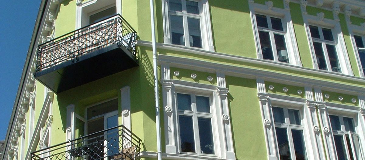 Bygårder malt med silikatmaling. Foto: Weber as