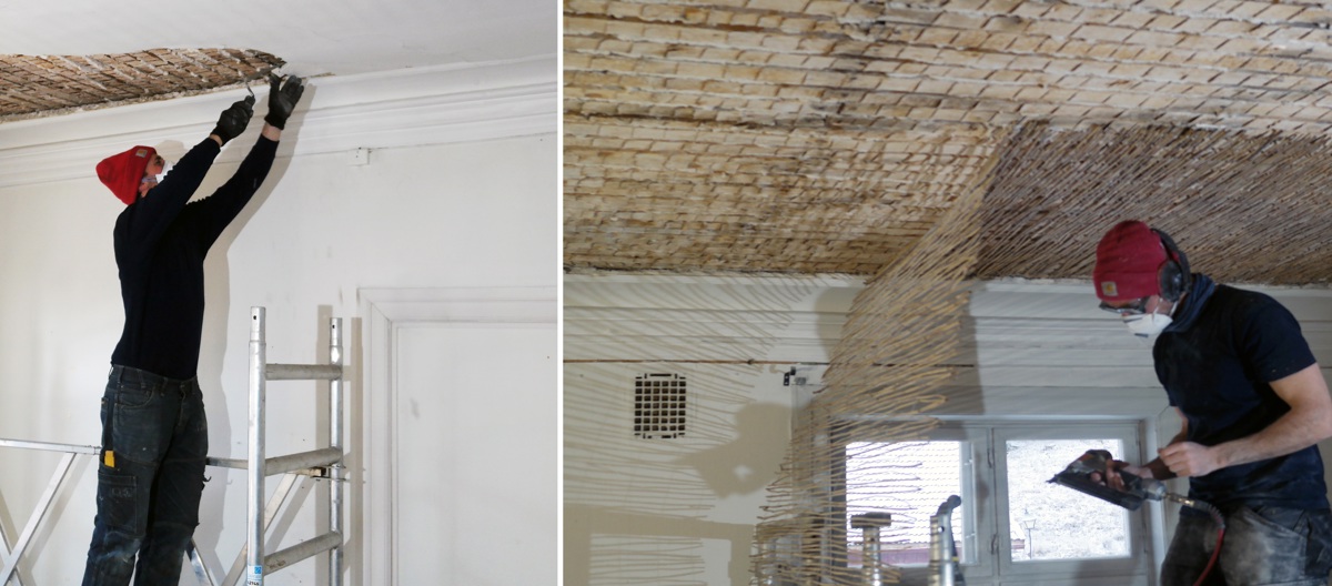 Bordene bør renses godt før sivmatter og puss legges på. Det sikrer at rørvevet ligger jevnt og at man ikke får støv og partikler i den friske pussen. Foto: NKHN