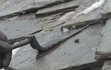 Ved Valdres Folkemuseum holdes det årlig flere kurs rettet mot håndverkere og nevenyttige huseiere. Vi fulgte et skifertekkingskurs sommeren 2015. Bygningen som da skulle få nytt skifertak ligger på tunet til Valdres Folkemuseum, og er et fjøs fra 1800-tallet. Taket skulle tekkes med gjenbruksstein som museet hadde samlet inn. I denne regionen kan man gjenbruke over 2/3 av hellene. 100 år gammel stein har fortsatt en lang levetid foran seg ved riktig tekking, forteller fagkonsulent og kursholder Odd Arne Rudi fra Valdres Folkemuseum.