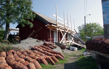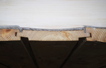 Ferdig takflate. Svilla er delvis skiftet, og skjøtet med fransk lås (bare delvis synlig). Foto: Per Øyvind Berg