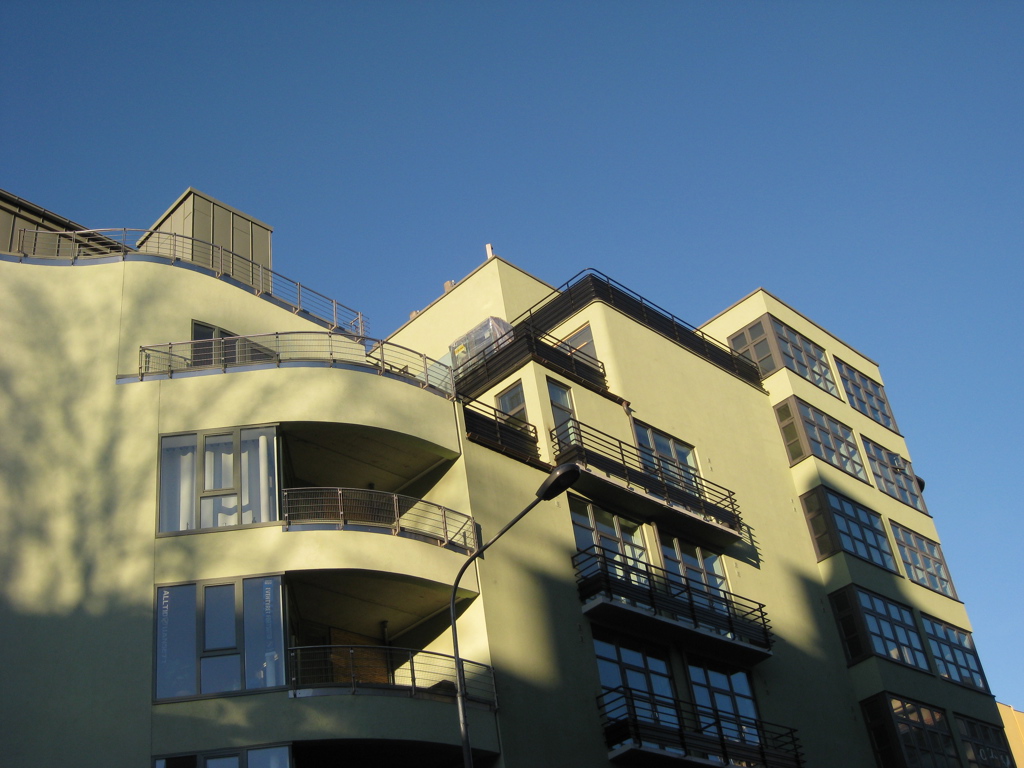 4) Prinsippet om fri fasade hvor fasaden skulle utformes som en logisk konsekvens av grunnplanen og de indre bobehov.